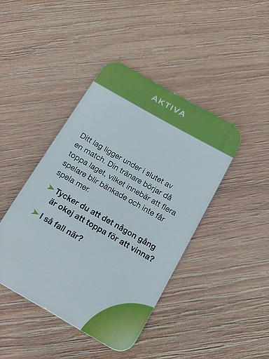 Grabbarna jobbade tillsammans i olika grupper för att få fram lite led-ord vad dom tycker är Värdegrund. Grabbarna fick olika scenario via kort som kan hända.